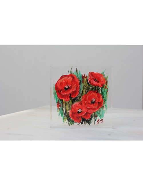 Η παραδοσιακή ζωγραφική συναντά τη σύχρονη διαφάνεια του πλέξιγκλας, δημιουργώντας ανάγλυφες συνθέσεις από παπαρούνες, κάλλες και αγριολούλουδα.